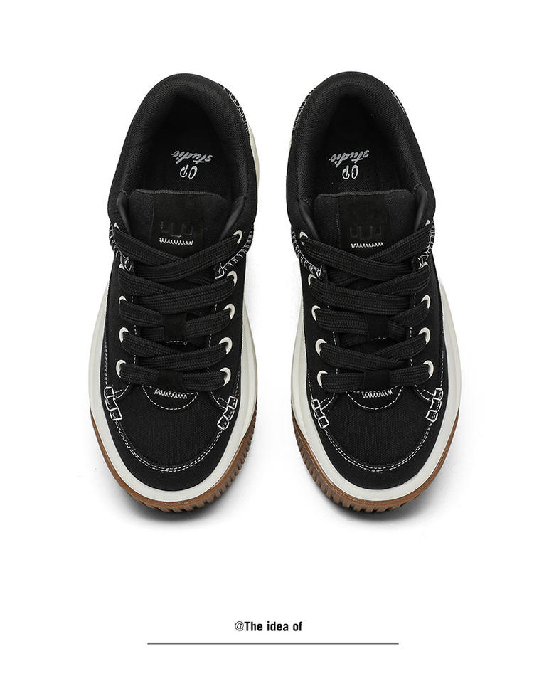 รองเท้าผ้าใบแบบสวมสบาย ดีไซน์เชือกผูก ปลายรองเท้าแบบ Loafer พื้นรองเท้าหนาแบบ Platform ยางคุณภาพดี รองเท้าลำลองแฟชั่นทันสมัย สีเขียวอมฟ้า ตามเทรนด์แฟชั่น