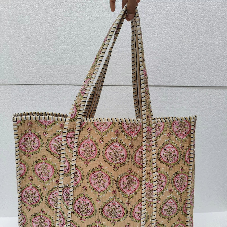 กระเป๋าถือผ้าฝ้ายสไตล์ใหม่กระเป๋าสะพายไหล่สไตล์โบฮีเมียนพิมพ์ลายบล็อกด้วยมือ