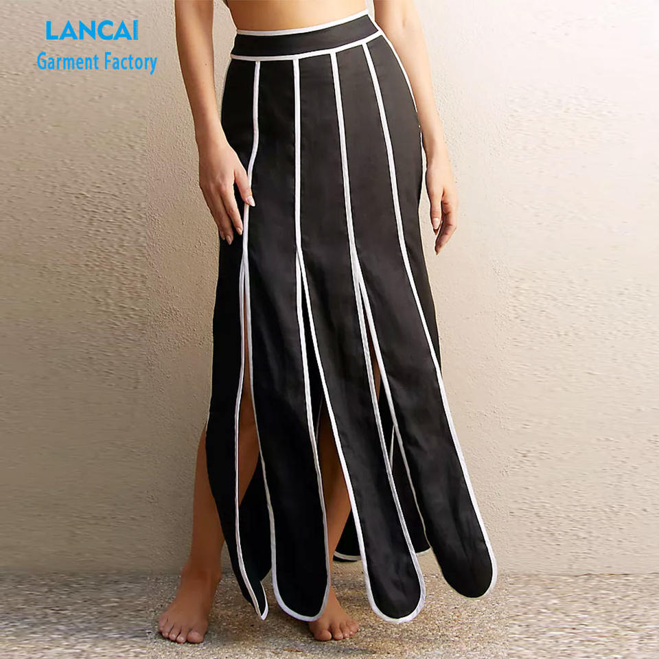 ชุดสองชิ้นกระโปรงและเสื้อกั๊กสำหรับผู้หญิงผ้าคอตตอนเอวสูงสไตล์ใหม่