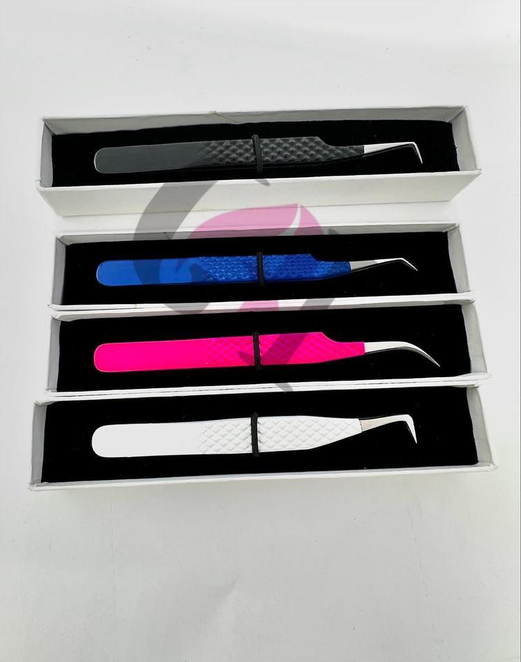 แหนบต่อขนตาปลายโค้ง 45 องศา สีเคลือบผงหลากหลายแบบ ปลายสีเงิน 90 องศา ทำจากสแตนเลสสตีล รุ่นใหม่ แบบกำหนดเองได้