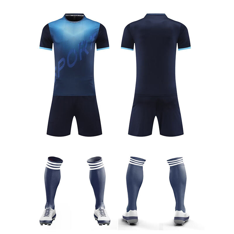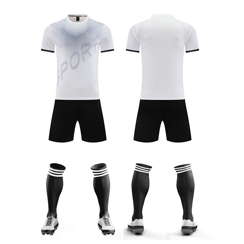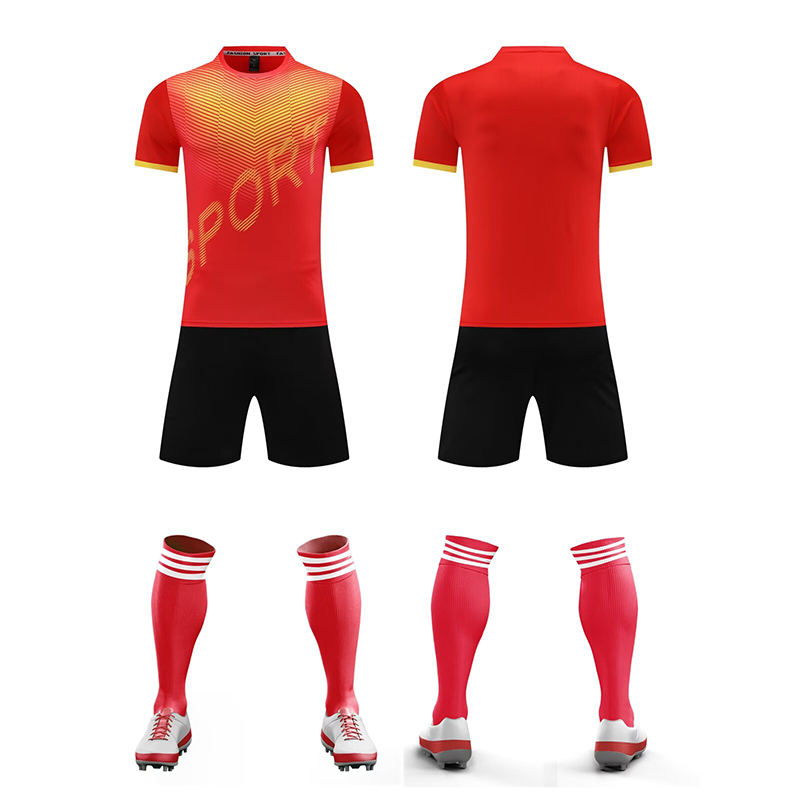 เสื้อฟุตบอลคอวีแขนครึ่งท่อนผ้าโพลีเอสเตอร์100% โลโก้ตามสั่งสไตล์ใหม่