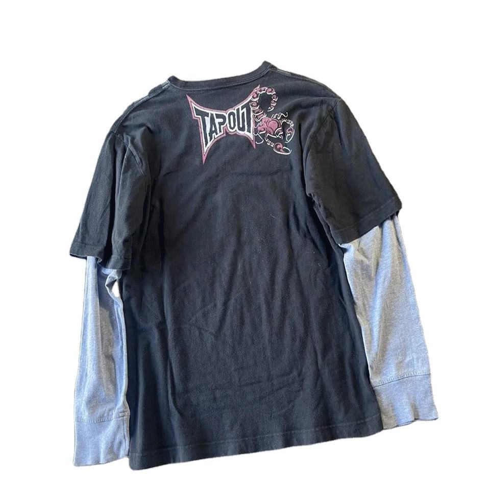 เสื้อยืดสองชั้นสำหรับผู้ชายเสื้อยืดแบบสตรีทแวร์แขนยาวออกแบบโลโก้ได้ตามต้องการ