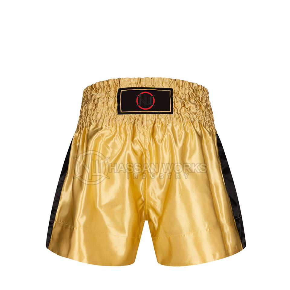 กางเกงมวยไทยสั่งตัดแบบใหม่ สีตามสั่ง ผลิตจากโพลีเอสเตอร์ 100% แห้งเร็ว ระบายอากาศดี บริการ OEM ผลิตในปากีสถาน สำหรับผู้ชาย