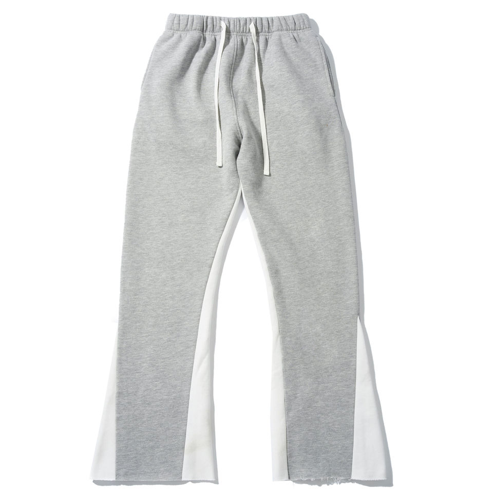 กางเกงวอร์มทรงขาบานสไตล์ใหม่สำหรับผู้ชาย กางเกงลำลองทรงหลวม กางเกงสเวตแพนท์แบบซ้อน ขอบเอวยางยืด ผ้าฝ้าย 100%