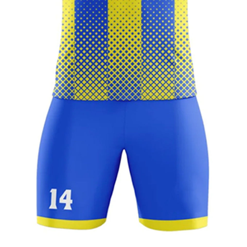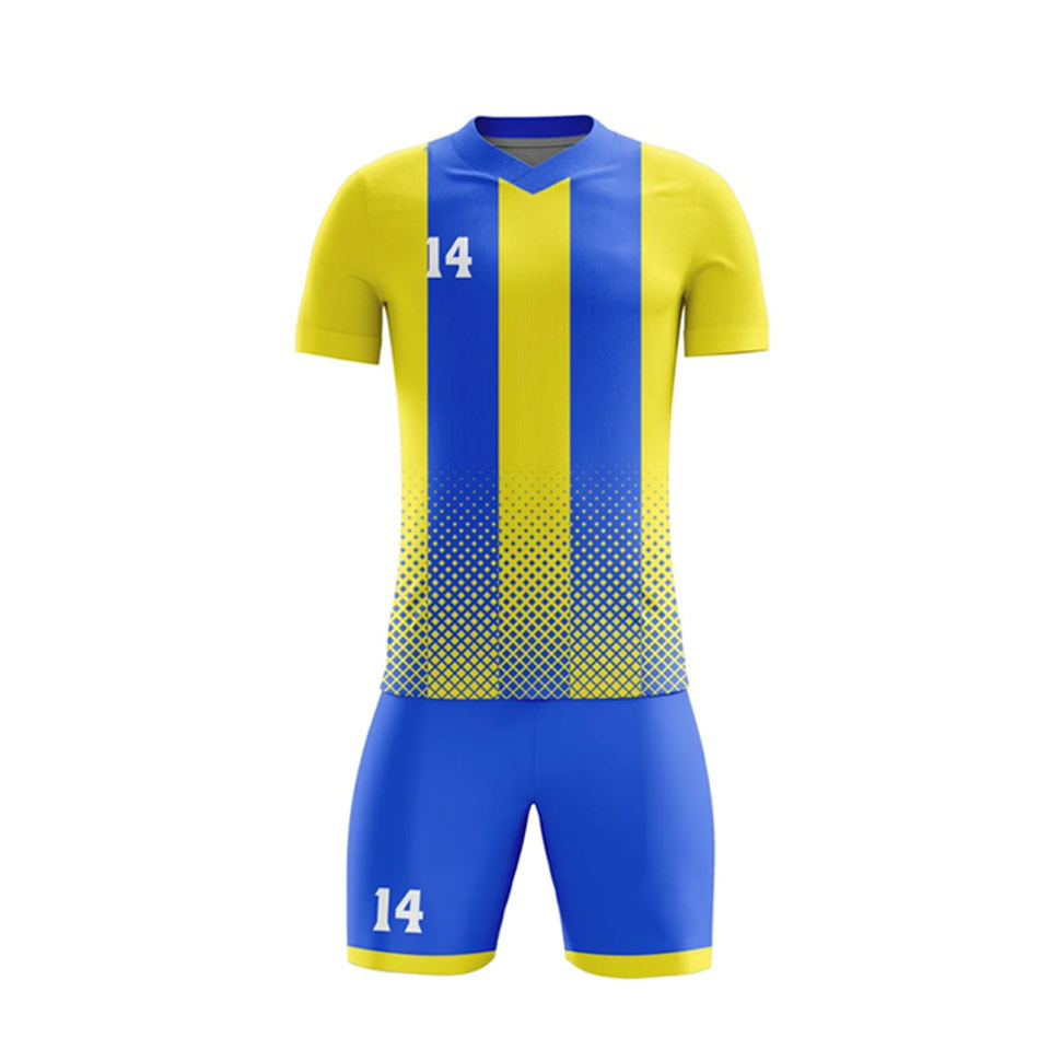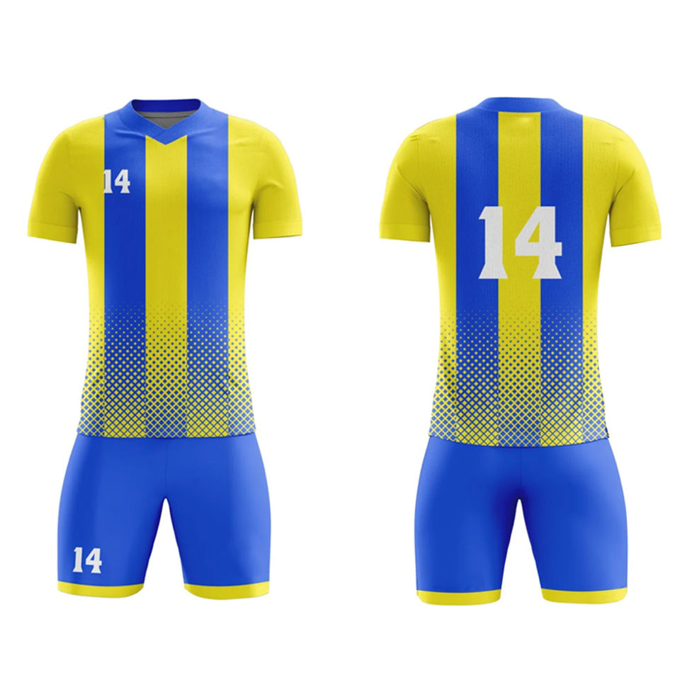 ชุดกีฬาฟุตบอลแบบใหม่สั่งทำได้ตามขนาด ผลิตจากโพลีเอสเตอร์ 100% ชุดแข่งขันฟุตบอลระดับมืออาชีพ พร้อมเสื้อและกางเกงขาสั้น