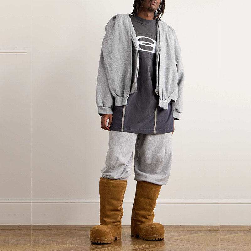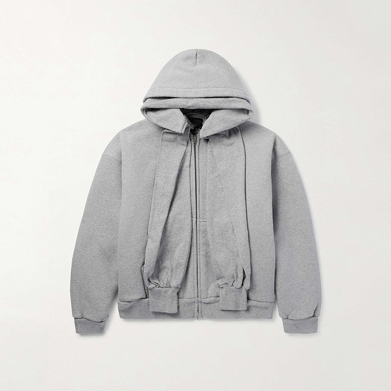เสื้อฮู้ดโอเวอร์ไซส์สำหรับผู้ชายเทรนด์เครื่องแต่งกายแนวสตรีทแบบกำหนดเองมีซิปเป็นชั้นๆมีเอกลักษณ์โลโก้แบบกำหนดเองสไตล์ใหม่