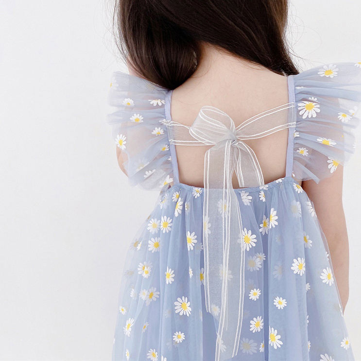 ชุดเดรสชีฟองพิมพ์ลายดอกไม้ แขนระบาย ดีไซน์น่ารัก สไตล์ใหม่ สำหรับเด็กผู้หญิงเจ้าหญิง ฤดูร้อน