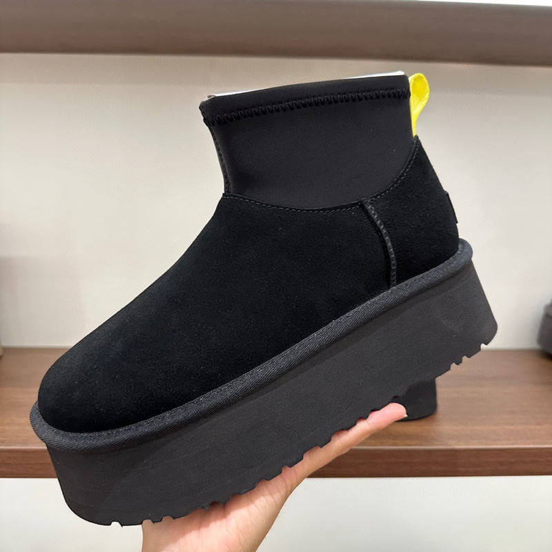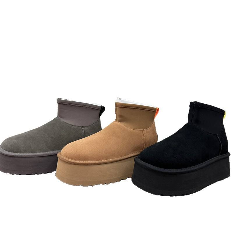 ถุงเท้ายาวแบบยืดได้สำหรับผู้หญิงรองเท้าบูทลุยหิมะหนังแท้เปิดส้นสูงสำหรับฤดูใบไม้ร่วง/ฤดูหนาว