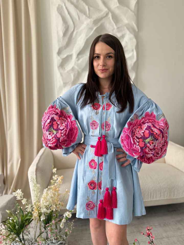 ชุดเดรสผ้าลินินปักลายดอกไม้แขนใหญ่สไตล์โบฮีเมียนเสื้อคลุมลายดอกโบตั๋นสำหรับผู้หญิงสไตล์ใหม่