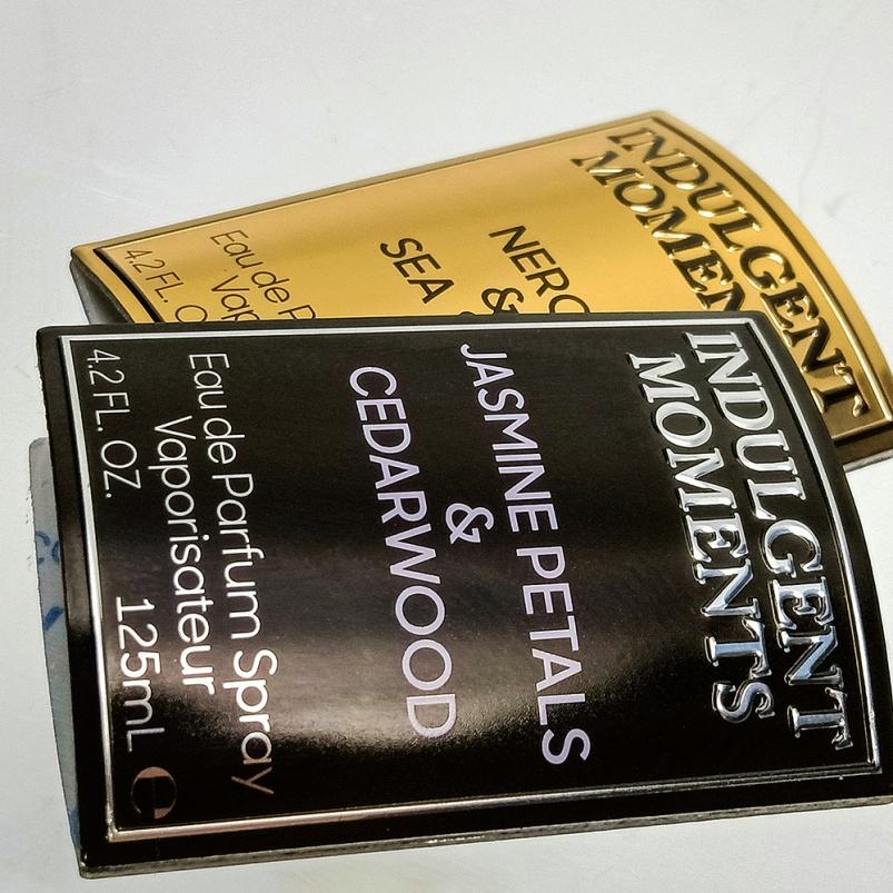 บรรจุภัณฑ์น้ำหอมหรูหราสไตล์ยุโรปแบบใหม่ พร้อมโปรโมชั่น ที่วางน้ำหอมโลโก้ปั๊มนูน อลูมิเนียมอัลลอยด์ทรงสี่เหลี่ยม 20 มม. พิมพ์ลายผิวมันเงา