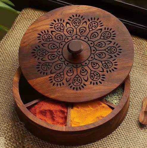 กล่องเครื่องเทศทำจากไม้สำหรับเก็บเครื่องเทศในครัวกล่องทรงกลมดีไซน์พิเศษ