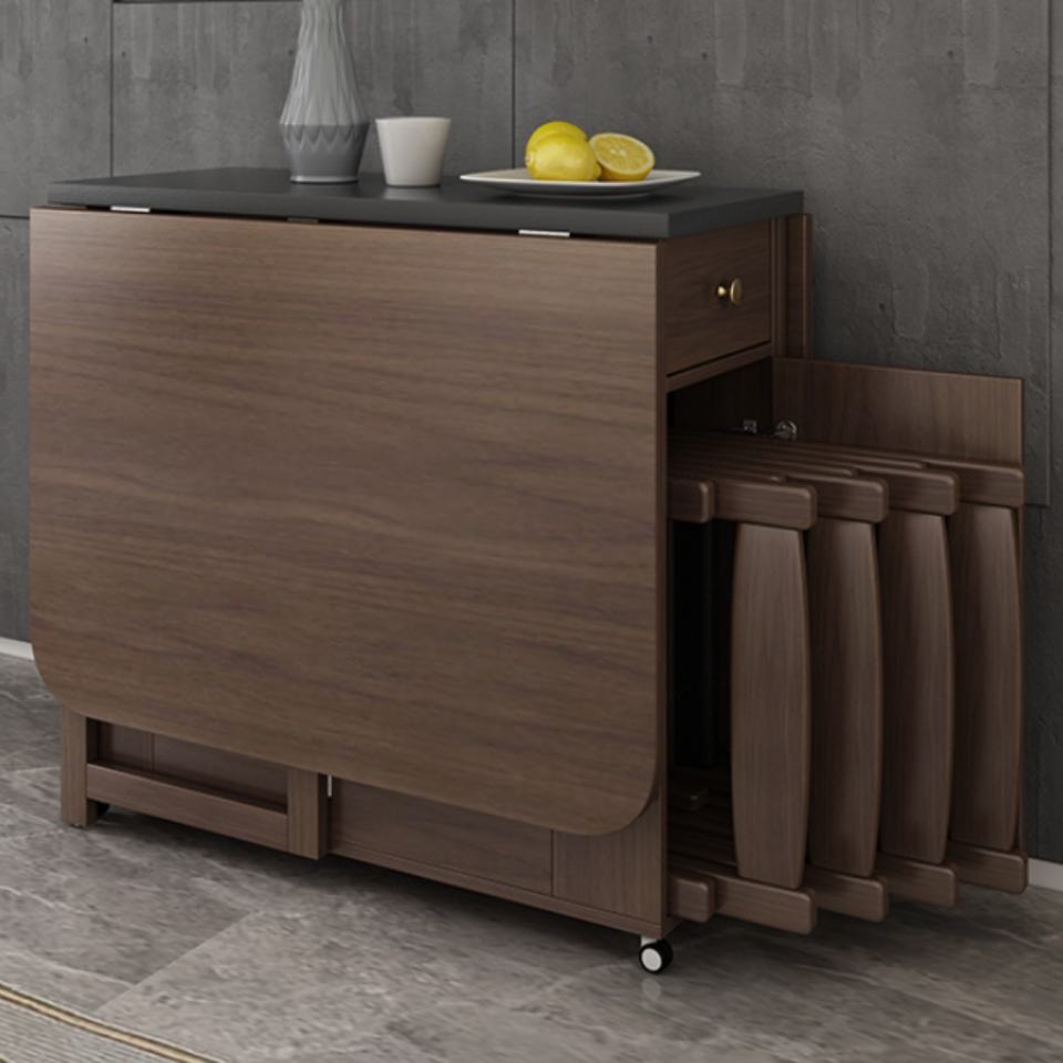 โต๊ะอาหารไม้แบบพับได้ ขยายได้ รุ่นใหม่ ประหยัดพื้นที่ พร้อมที่นั่งพับเก็บได้ 2 ที่นั่ง