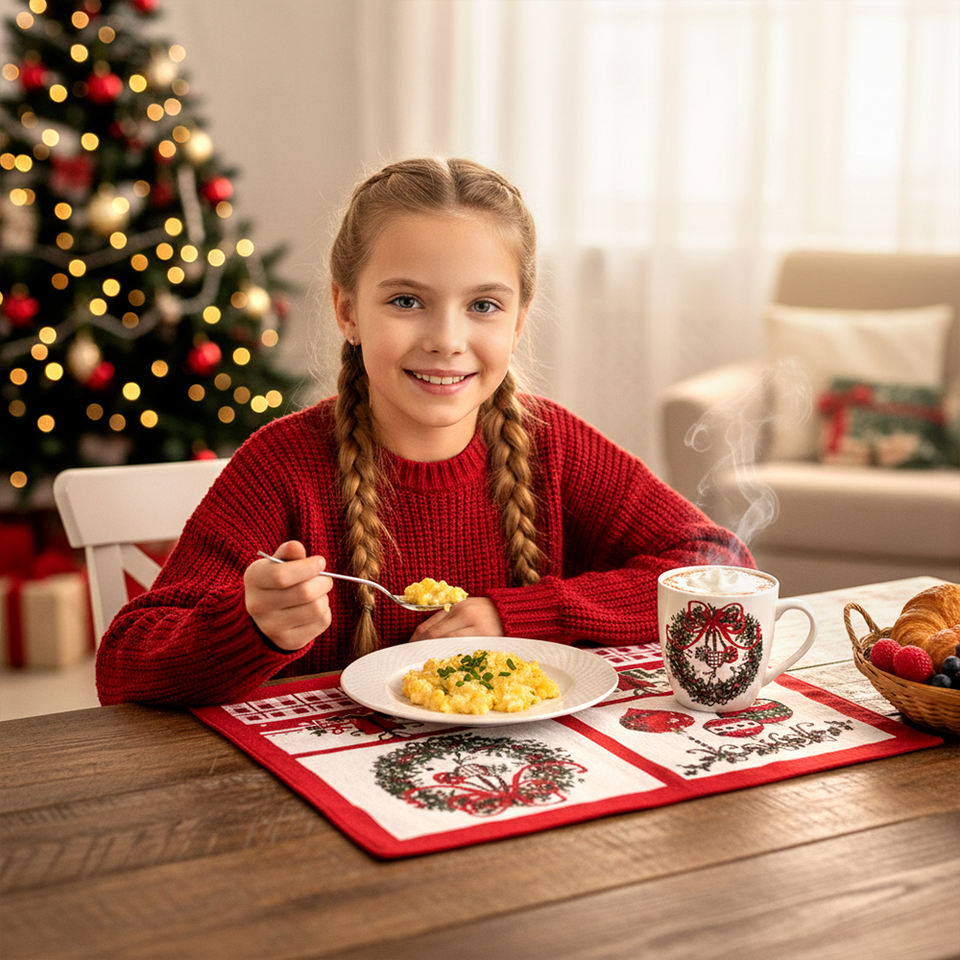 แผ่นรองจานอาหารสำหรับครอบครัวสไตล์ใหม่ของตกแต่งคริสต์มาสของขวัญเทศกาลคริสต์มาสโต๊ะโพลีโพรพิลีนบางพิมพ์ลายล้างทำความสะอาดได้หรูหรา