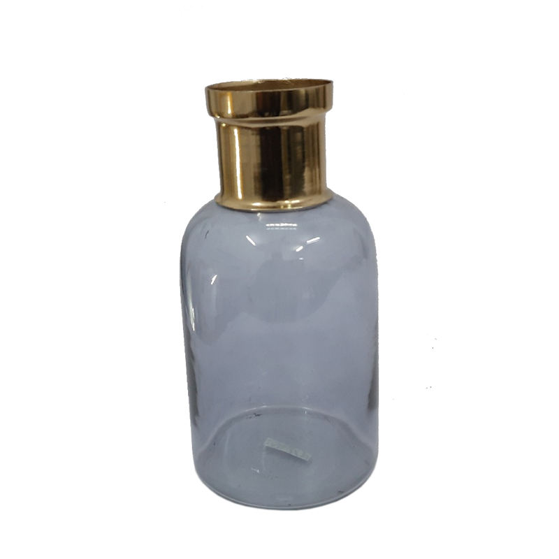 แจกันแก้ว & โลหะดอกไม้สไตล์ใหม่สีฟ้าสำหรับบ้านและโรงแรมแจกันแก้วดอกไม้ประดับโต๊ะทำด้วยมือจำนวนมาก