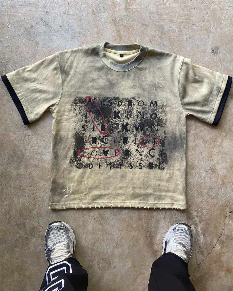 เสื้อยืดผู้ชายทรงโอเวอร์ไซส์สีดำสไตล์วินเทจผ้าคอตตอนเนื้อหนักแบบใหม่ ล้างสีแบบแอซิดวอช พิมพ์ลายดิจิทัล