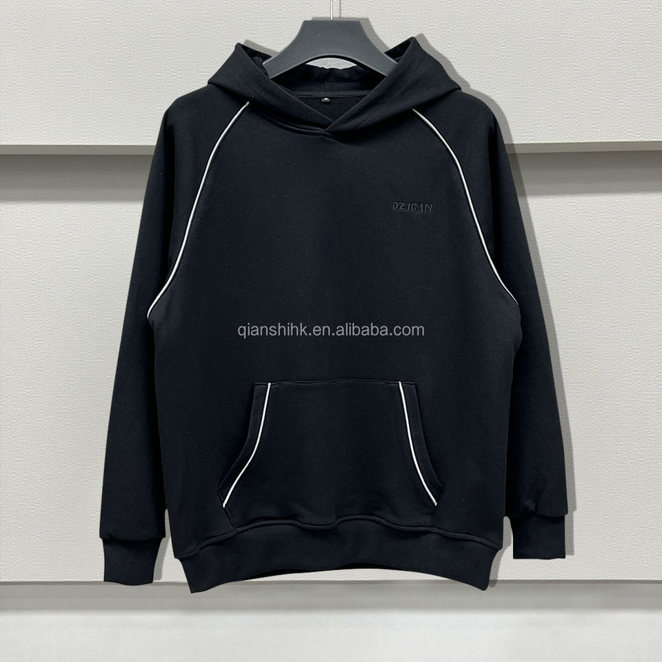 เสื้อมีฮู้ดแบบสวมศีรษะสะท้อนแสงผ้าฝรั่งเศสเทอร์รี่สไตล์ใหม่เสื้อมีฮู้ดสีดำหนาแบบบ็อกซี่มีฮู้ดโอเวอร์ไซส์ผู้ผลิต