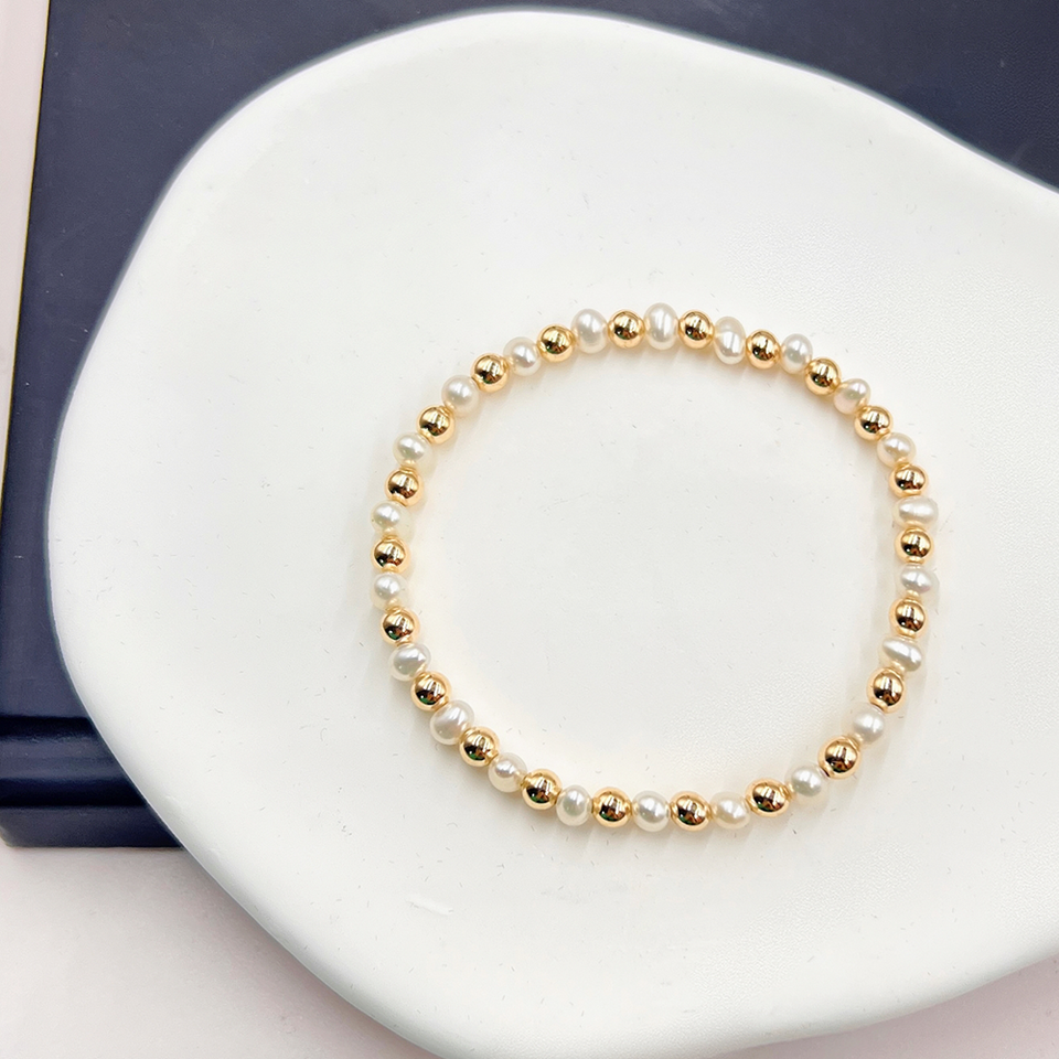สร้อยข้อมือลูกปัดมุกประดับทอง14K สำหรับผู้หญิงสร้อยข้อมือลูกปัดมุกสไตล์ใหม่เครื่องประดับแฟชั่นถาวร
