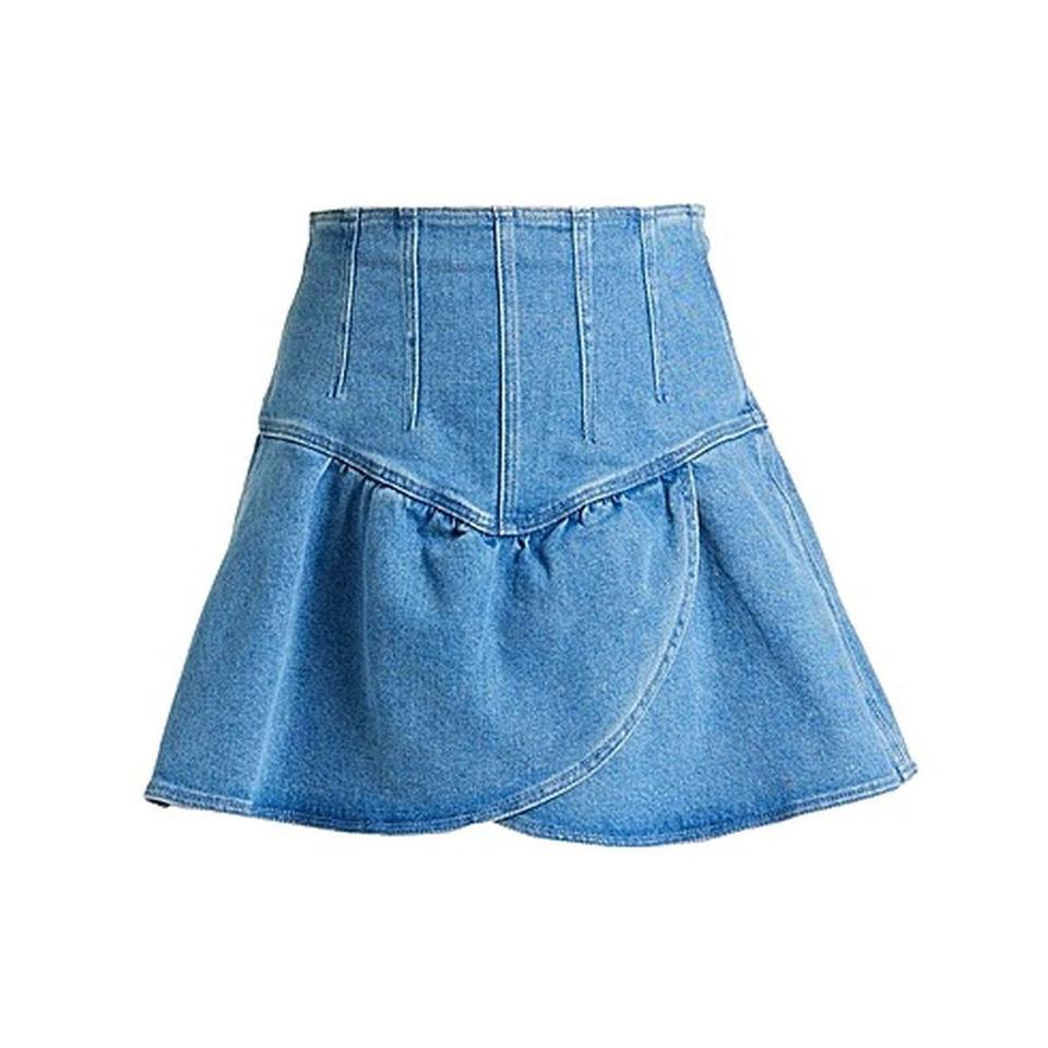 กระโปรงผ้ายีนส์ของผู้หญิงกระโปรงลำลองแบบธรรมชาติระบายอากาศได้เอวสูงรัดรูปคาวบอยยาวถึงเข่าสไตล์วินเทจแห้งเร็ว