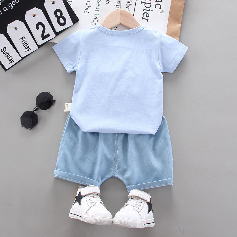ชื่อสินค้า:ชุดเสื้อผ้า เสื้อยืดเด็กผู้ชายสีพื้น และกางเกงสีเทอร์ควอยซ์