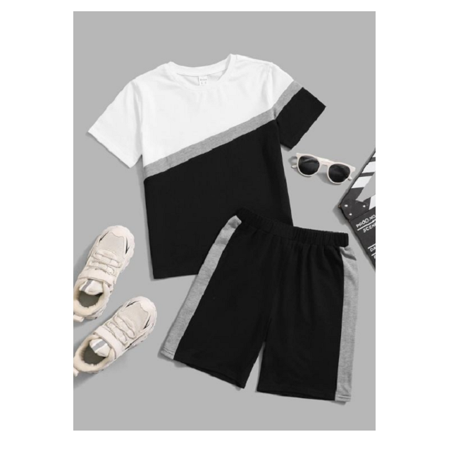 ชุดกางเกงขาสั้นคอกลมด้านบนสําหรับเด็กผู้ชาย
