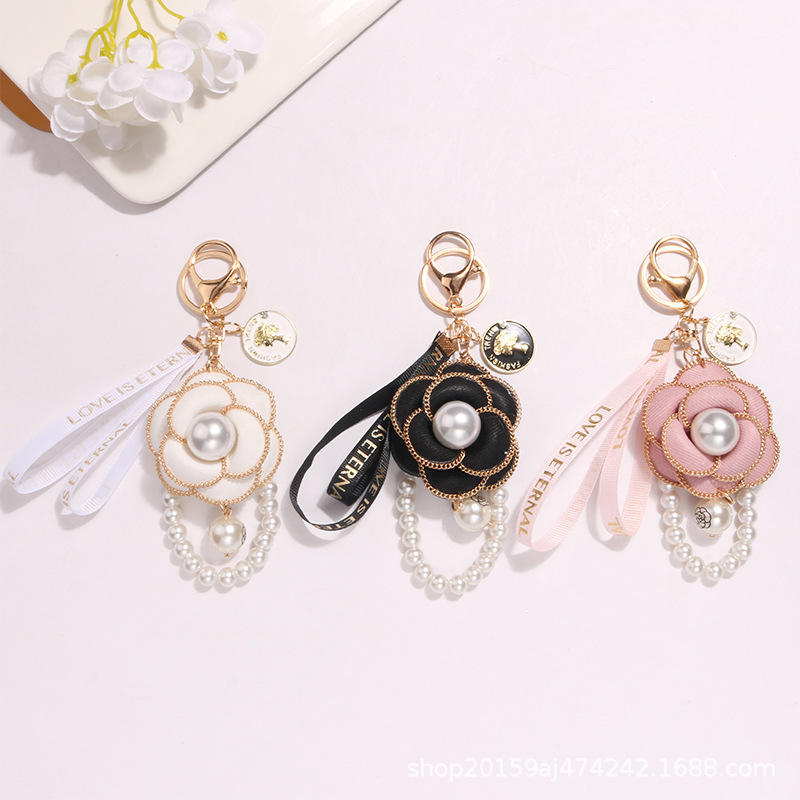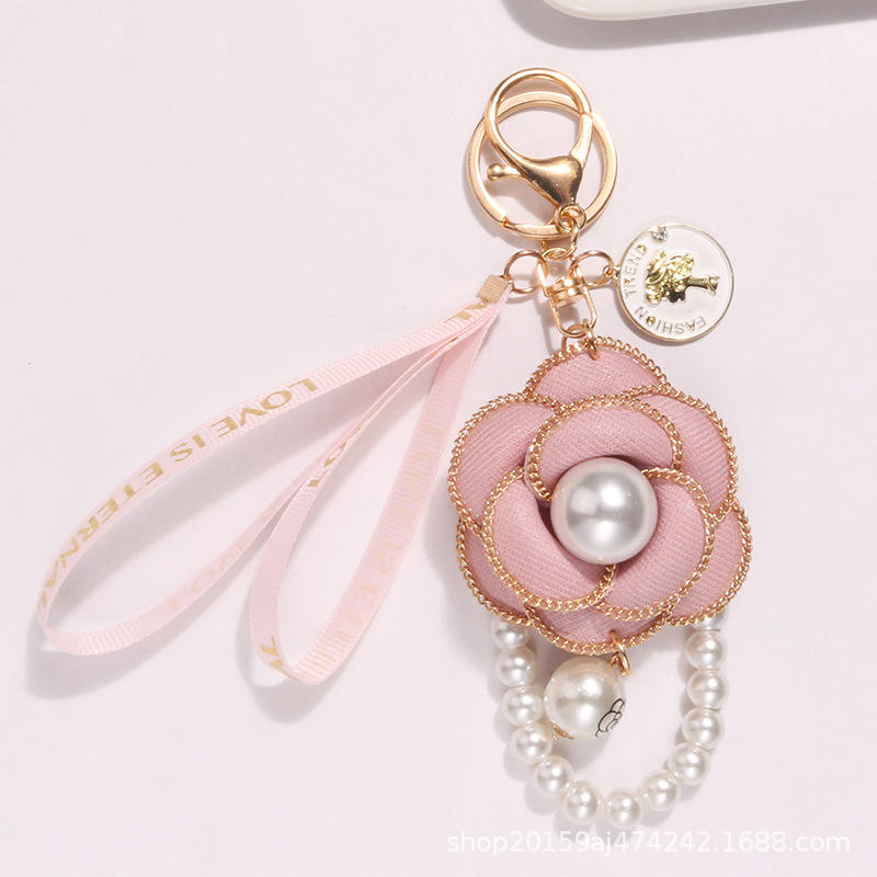 จี้พวงกุญแจดอกคาเมลเลียขนาดใหญ่สไตล์ใหม่อุปกรณ์เสริมโซ่มุกสุดสร้างสรรค์สำหรับตกแต่งกระเป๋า
