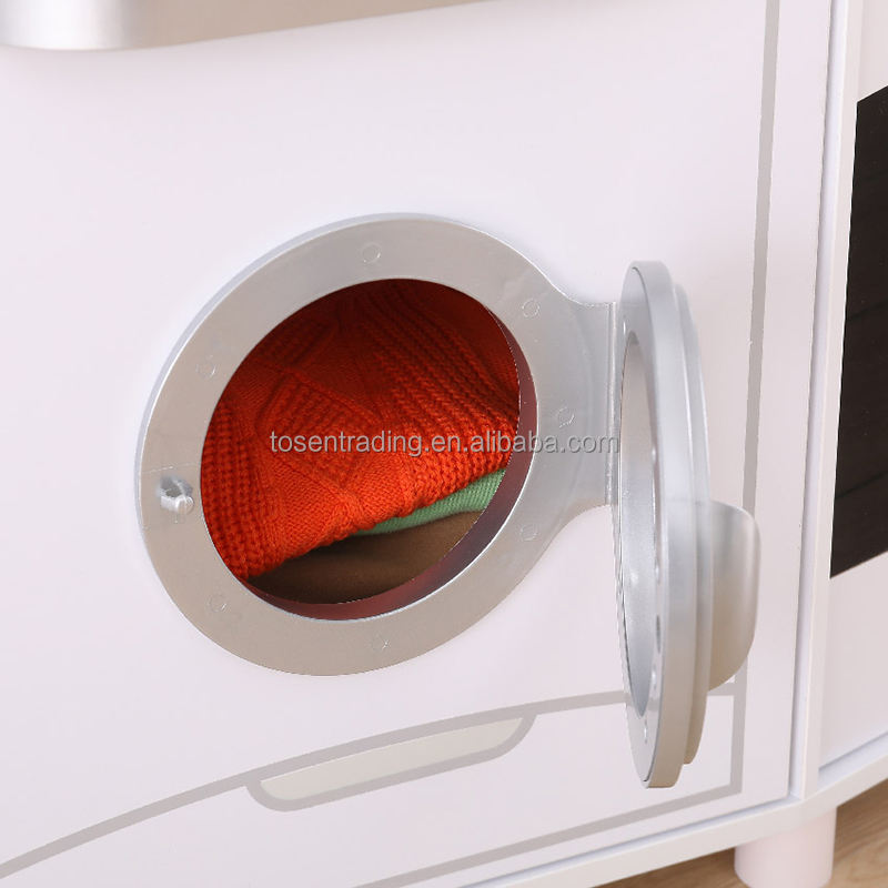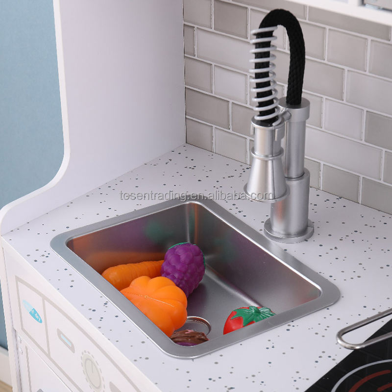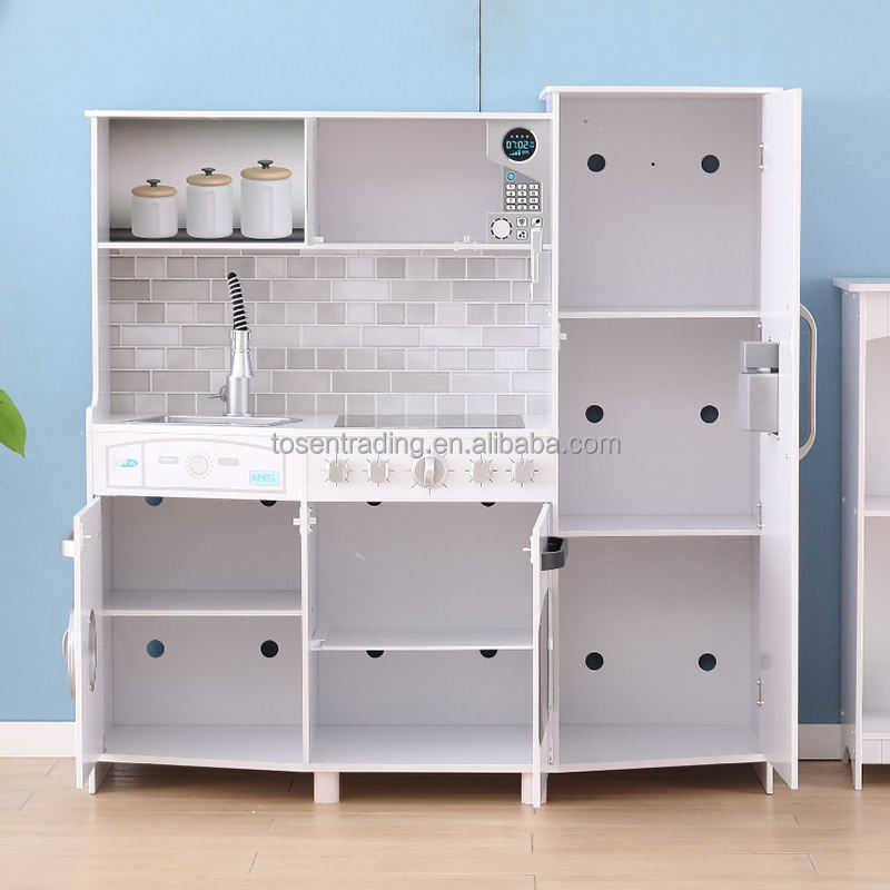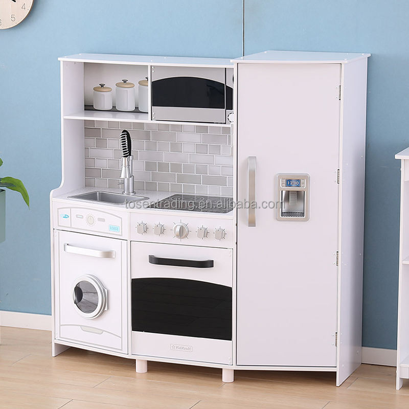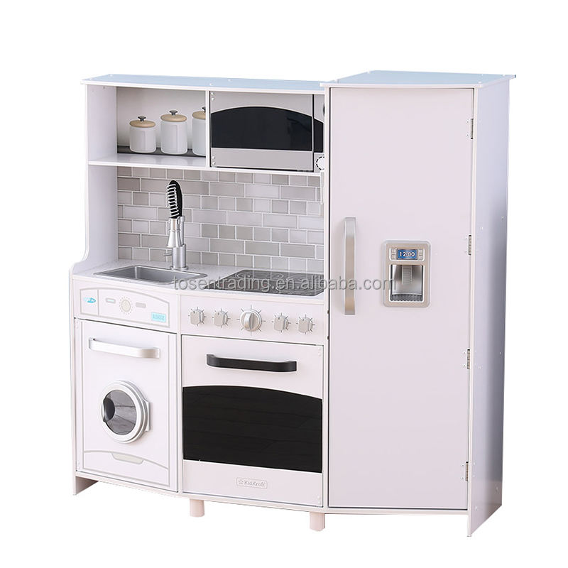 New Style Large Role Play Wooden Kitchen with Laundry, Ice Maker, Sink and Faucet, Burners for Kids Play