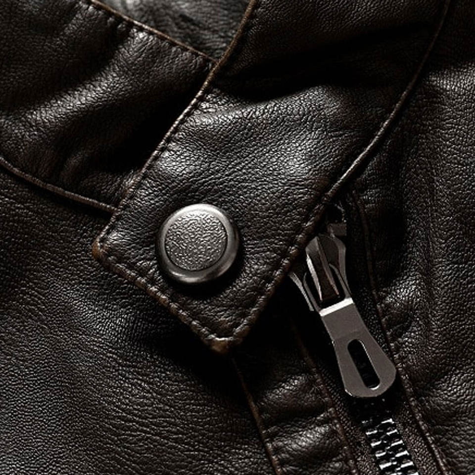 New Style Light Weight Windproof Men's Leather Jacket Stand Collar Front Logo Customizable Design High Quality Winter Jacket