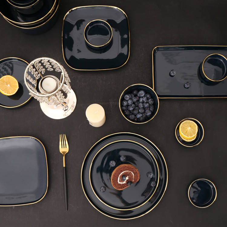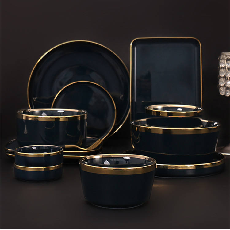 เครื่องลายครามเส้นทองหรูหราสไตล์ใหม่สำหรับใช้ในบ้านร้านอาหารอุปกรณ์รับประทานอาหารเซรามิก