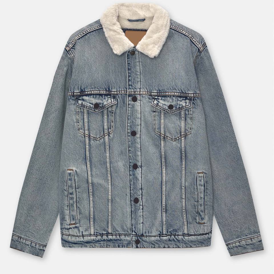 แจ็กเก็ตยีนส์สำหรับผู้ชายขนาดใหญ่สไตล์ลำลองระบายอากาศได้ดีแจ็กเก็ตเดนิมสีพื้นสำหรับผู้ชาย