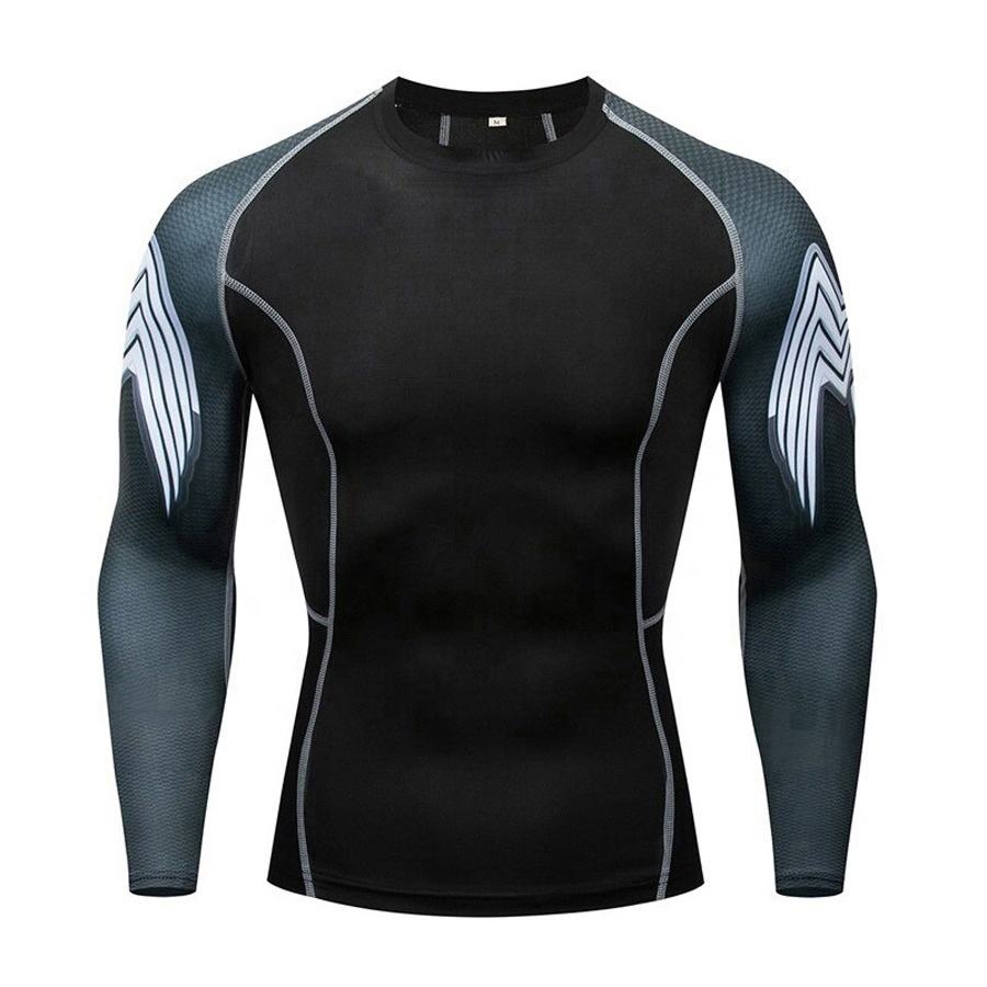 เสื้อรัดรูปพิมพ์ลายสำหรับผู้ชายเสื้อแรชการ์ดแบบใหม่โลโก้ตามสั่ง