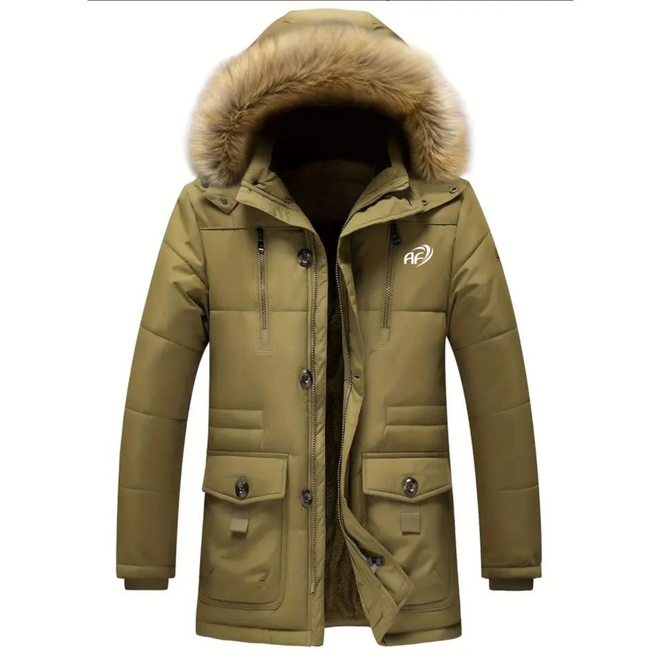 เสื้อโค้ทกันหนาวของผู้ชายเสื้อแจ็คเก็ตมีฮู้ดหุ้มฉนวนหนามีหลายกระเป๋าเสื้อโค้ทสไตล์ลำลองสำหรับผู้ชาย