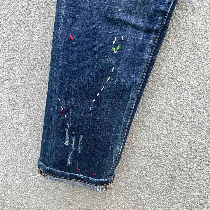 กางเกงยีนส์ของผู้ชายกางเกงผ้าฝ้ายเอวสูงซักได้พอดีตัวสไตล์ใหม่100%