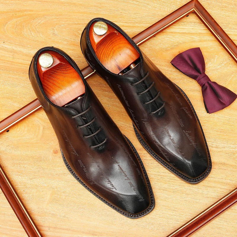 รองเท้าหนังผู้ชายแบบใหม่ สไตล์ธุรกิจ แบบกระดุมสองเม็ด สีดำ เพิ่มความสูง กันน้ำ และกันลื่น