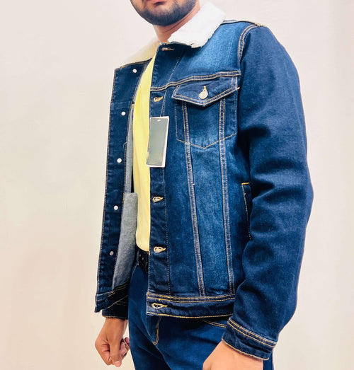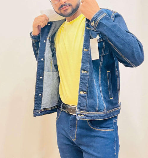 แจ็กเก็ตกันลม2022ของผู้ชายทรงสลิมฟิตกลับได้คอตั้งโลโก้ด้านหน้าลำลองผ้าเดนิม