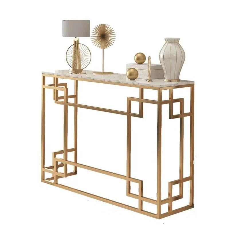 โต๊ะคอนโซลโลหะสไตล์ใหม่พร้อมหินอ่อนท็อปโกลด์สำหรับตกแต่งบ้านห้องนั่งเล่นเฟอร์นิเจอร์โต๊ะคอนโซล