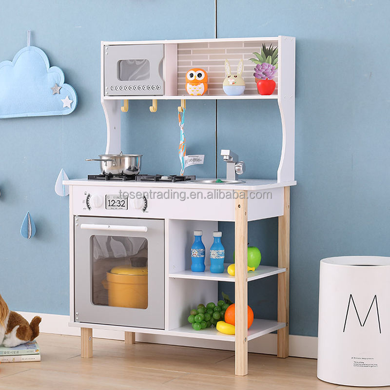 ชุดครัวไม้สีขาวสไตล์โมเดิร์นแบบใหม่ พร้อมเตาอบ เตาแก๊ส อ่างล้างจาน และก๊อกน้ำ สำหรับเด็กเล่นบทบาทสมมติ