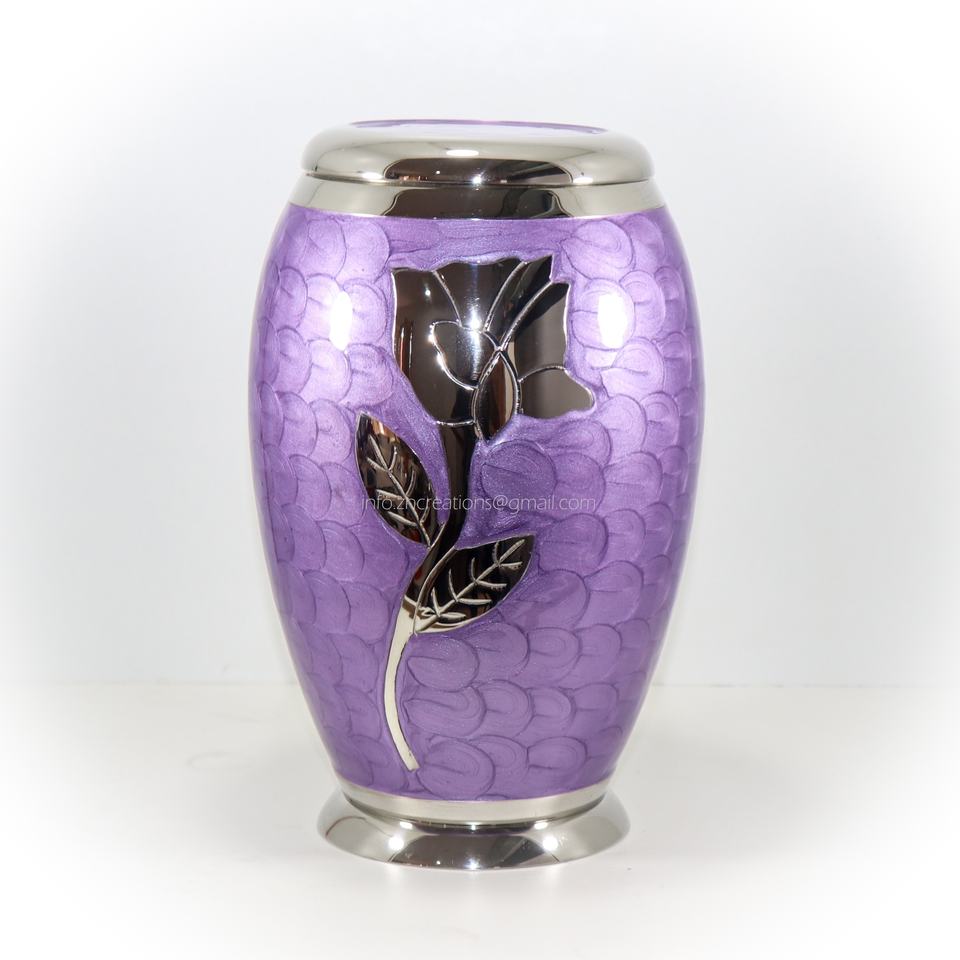 โกศบรรจุอัฐิสำหรับผู้ใหญ่แบบใหม่ สไตล์โมนาร์ช ทำด้วยมือ สีม่วง แกะสลักลายกุหลาบทองเหลือง โกศใส่เถ้ากระดูกแบบกำหนดเอง แกะสลักด้วยระบบดิจิทัลสำหรับเถ้ากระดูกมนุษย์