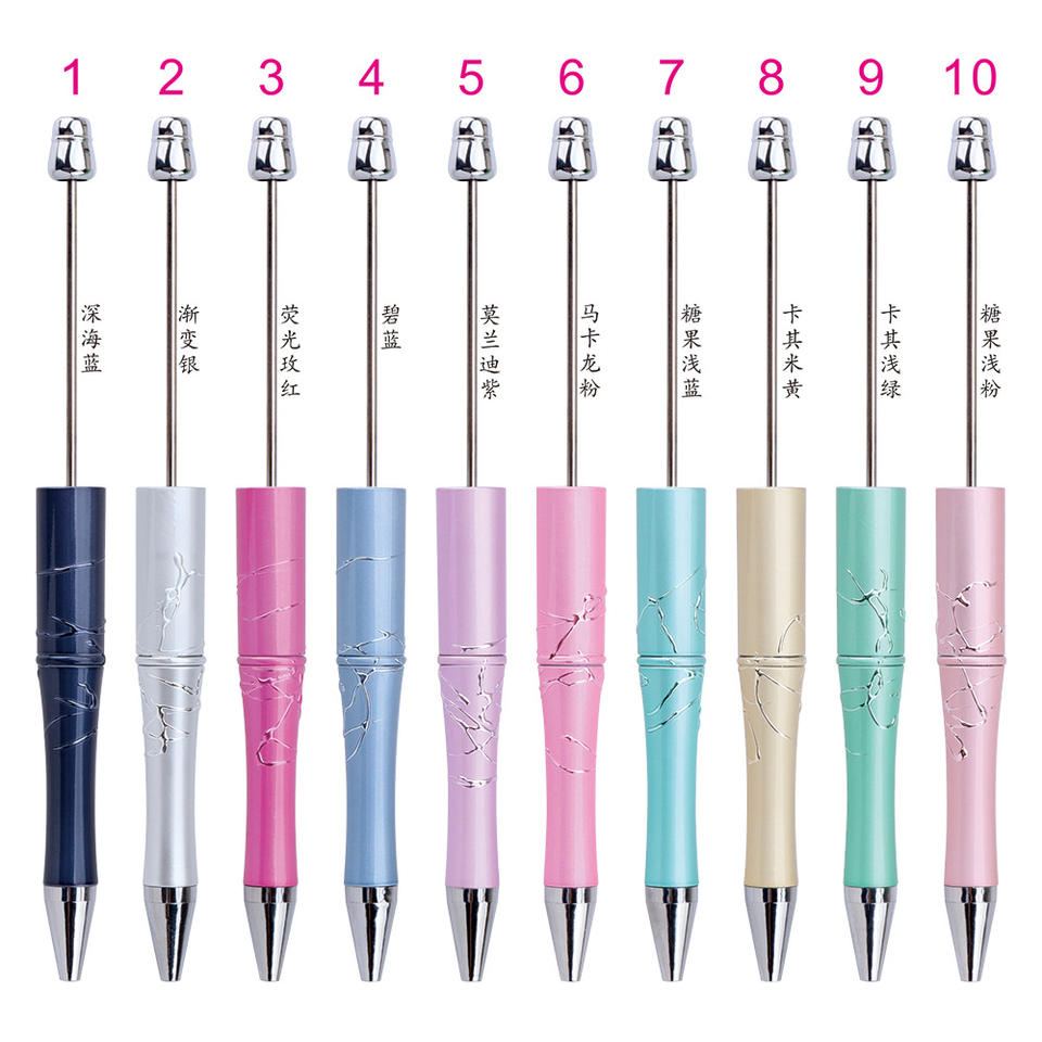 ปากกาลูกปัดหลากสีแบบทำมือด้วยแสงยูวีหลากสีลูกปัดแวววาวพร้อมปากกาลูกลื่นพลาสติกของขวัญ
