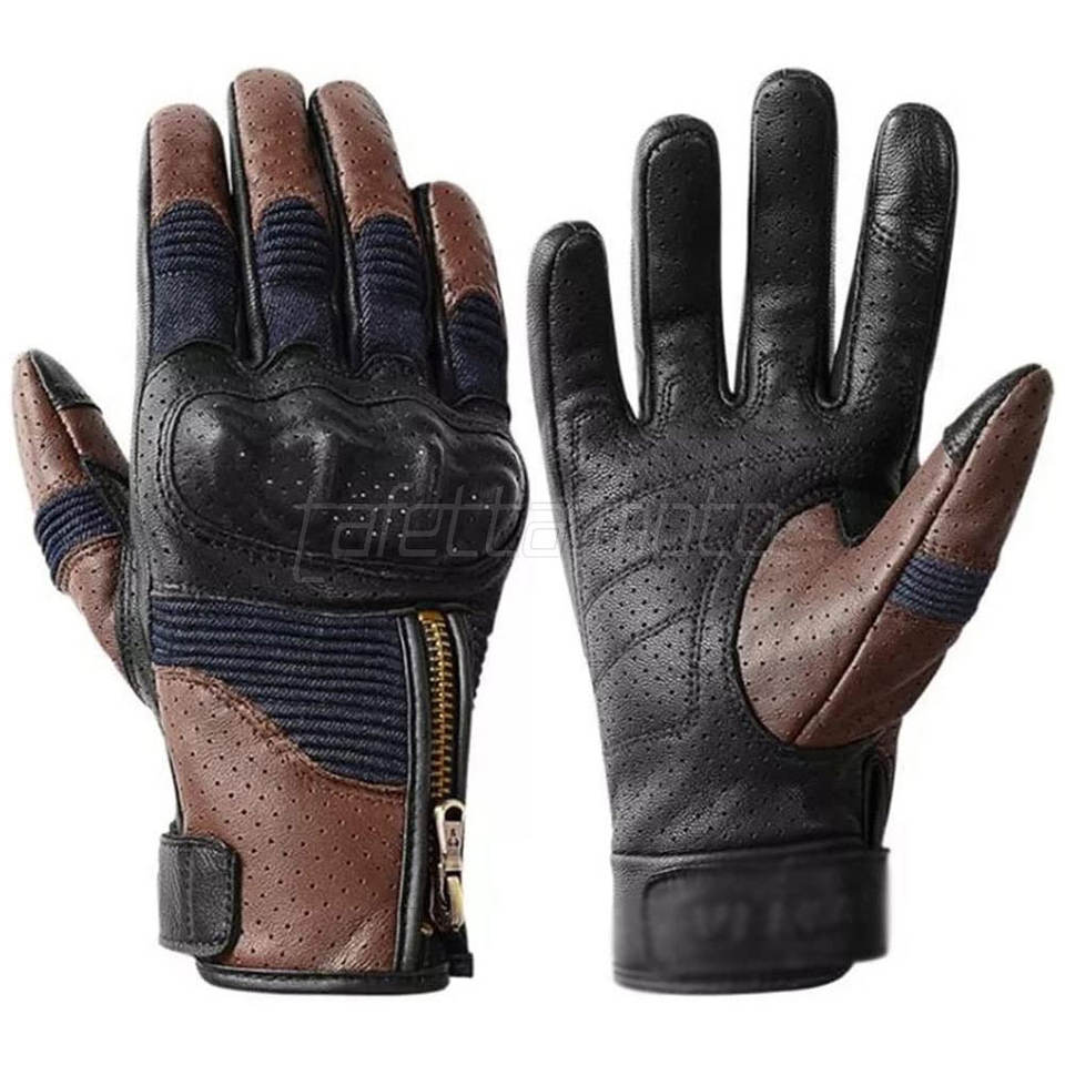 ถุงมือหนังแบบเต็มนิ้วสำหรับแข่งรถมอเตอร์ไซด์กลางแจ้งหนังแท้ถุงมือแข่งรถมอเตอร์ไซค์แบบวินเทจสไตล์ใหม่