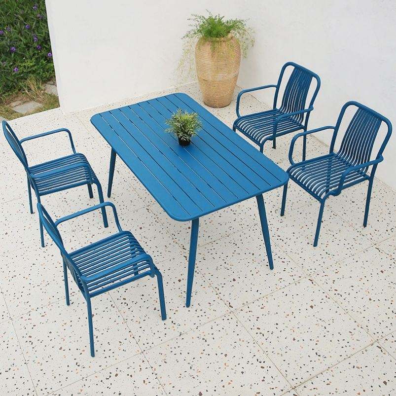 โต๊ะเก้าอี้ในสวนกลางแจ้งสไตล์ใหม่โต๊ะรับประทานอาหารกลางแจ้งและที่ชาร์จไฟสำหรับอลูมิเนียมเฟอร์นิเจอร์โลหะกลางแจ้งคาเฟ่ร้านอาหาร