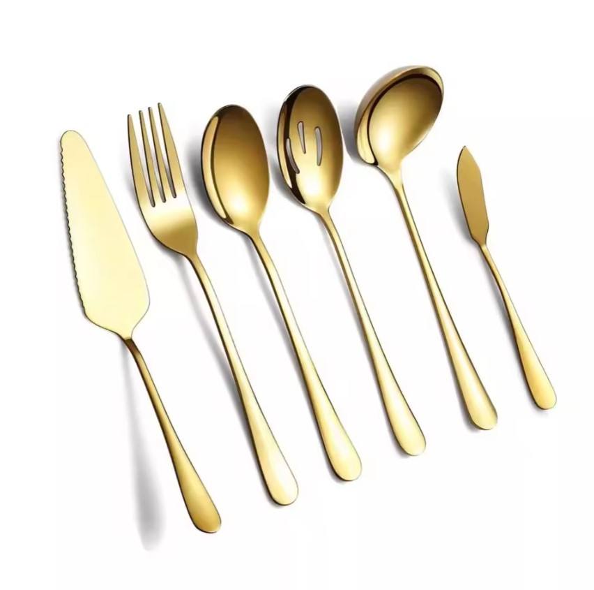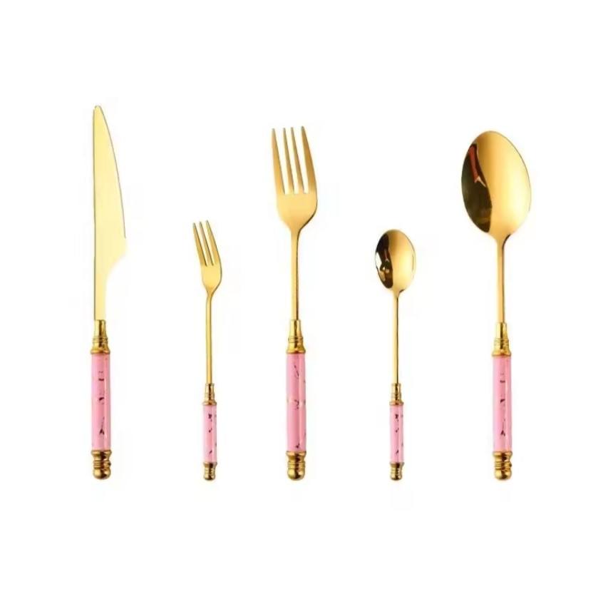 New Style Pleasant Colourful Ceramic Handle Flatware Set Stainless Steel Gold Plated Solid Tableware Wedding Cutlery Set