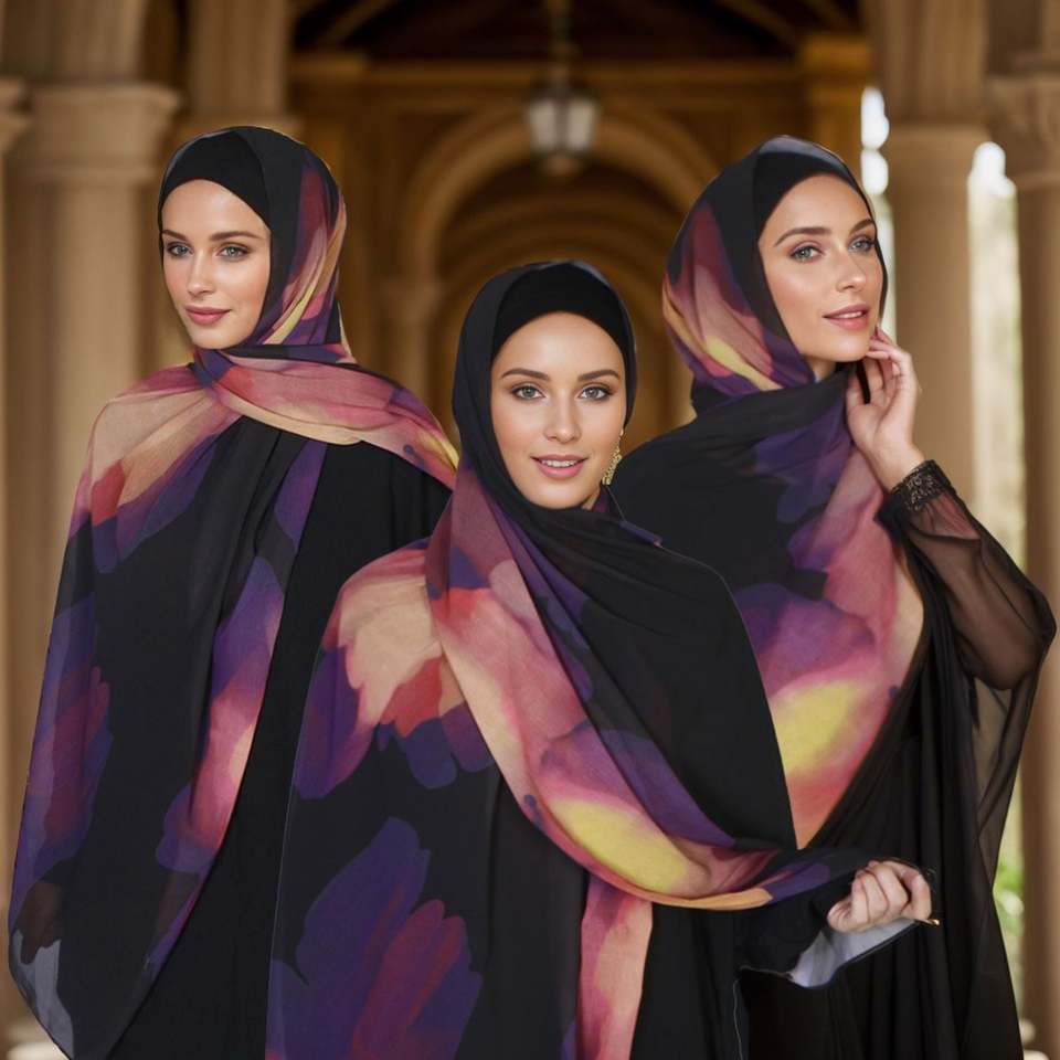 ผ้าคลุมไหล่ชีฟองพิมพ์ลายดิจิทัลสไตล์ใหม่ยอดนิยมจากมาเลเซีย สำหรับผู้หญิงมุสลิม ฮิญาบ ผ้าคลุมศีรษะ รุ่น YHK0028