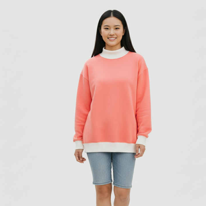 เสื้อสเวตเตอร์ผ้าคอตตอนแบบสองโทนสีสดใสผ้าหลวมสำหรับฤดูหนาว