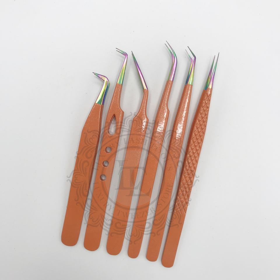 แหนบปลายแหลม 90 องศา แบบมืออาชีพ รุ่นใหม่ พร้อมเคลือบผงกลิตเตอร์สีส้มเงิน ปลายไฟเบอร์ ใช้งานได้ยาวนาน