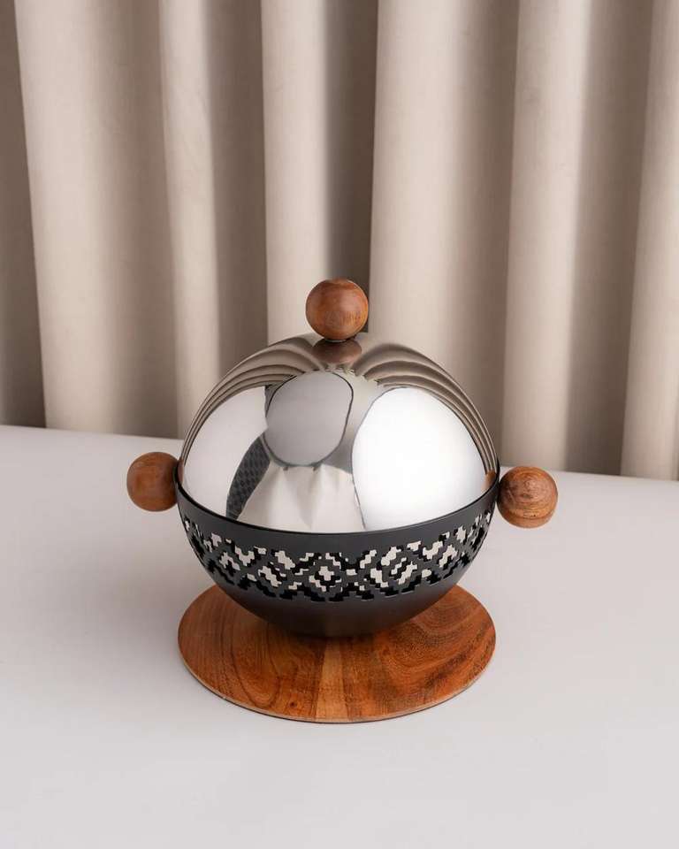 New Style Round Wood & Metal Design Handmade Classic Decorative Middle East Food Warmer Buffet Hotpot Casseroles Hot Pot Warmer