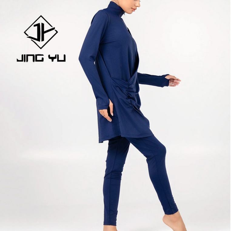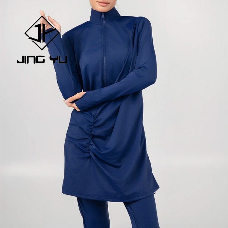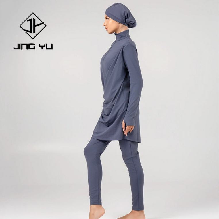 ชุดว่ายน้ำฮิญาบแบบใหม่ แต่งระบาย 3 ชิ้น รับสกรีนโลโก้ สีพื้น ชุดว่ายน้ำมุสลิมสำหรับชายหาด