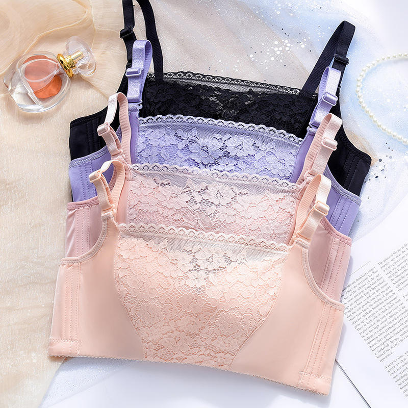 New Style Sexy Woven Floral Lace Non-magnetic Soft Wire Free Breathable Lining Adjustable 3/4 Cup Push-Up Women's Bra