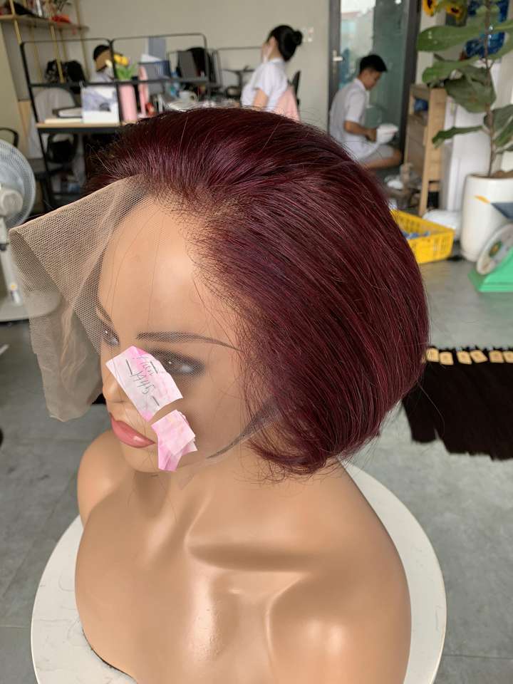 วิกผมสั้นแบบใหม่วิกผมด้านหน้าแบบชาวเวียดนามดึงคู่100% ผมมนุษย์สไตล์ใหม่