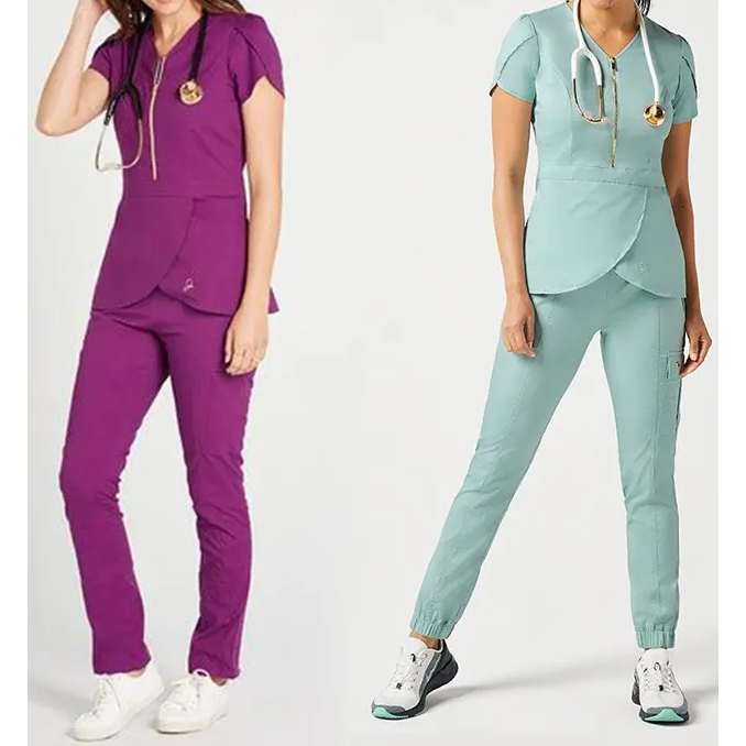ชุดยูนิฟอร์มสปาสไตล์ใหม่สำหรับผู้หญิง ชุดสครับแฟชั่นทันสมัย ขายส่ง ชุดยูนิฟอร์มพยาบาลแบบสั่งทำ แขนสั้นสำหรับผู้หญิง