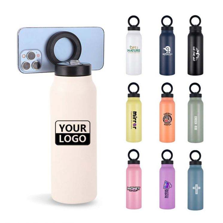 กระติกน้ำเก็บความร้อนแบบใหม่ ขนาด 24 ออนซ์ ผลิตจากโลหะ พร้อมที่ยึดโทรศัพท์ ทำจากสแตนเลสสตีล ใช้กับแม่เหล็กได้